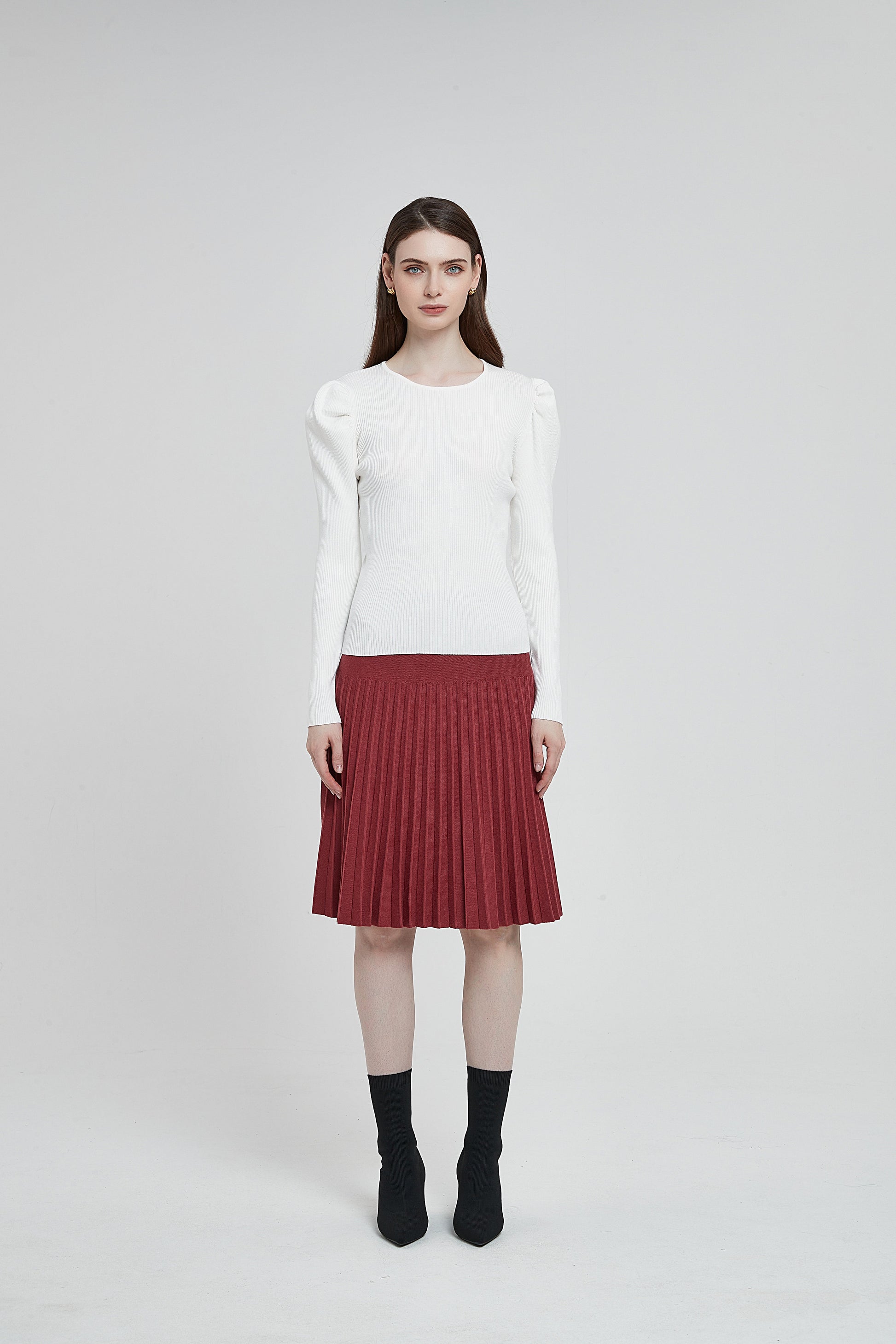 Our pleated skirts are more of an ALINE shape, (rather than the FIT N FLARE year round). It is for this reason that they appear longer (even if measuring the same) because there is no flare.Β  It is also for this reason that the waist size appears a little bigger (even though our YEAR ROUNDS stretch to the same size).